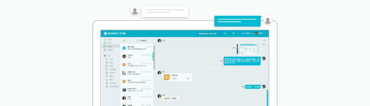 当工作信息分散在不同聊天工具中,专注度已大打折扣,工作圈帮您重拾碎片化时间:我们的消息支持图片文字文件多端同步,在不同手机电脑上自如切换连续办公;针对那些“假装没看见”的人,我们有已读、未读显示;我们能实时推送工作待办消息,审批、任务、报告一秒也不耽误。